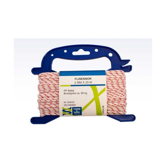 Fugesnor i flettet polypropylen hvid/rød med hjerte 2 mm x 25 m Flettet polypropylen fuge/flisesnor...