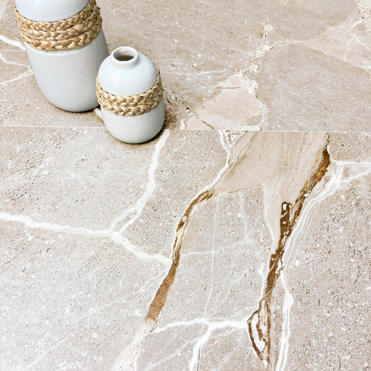 Monaco er vores lækre marmor-look flise med cross cut look i 2 naturtro farver og...
