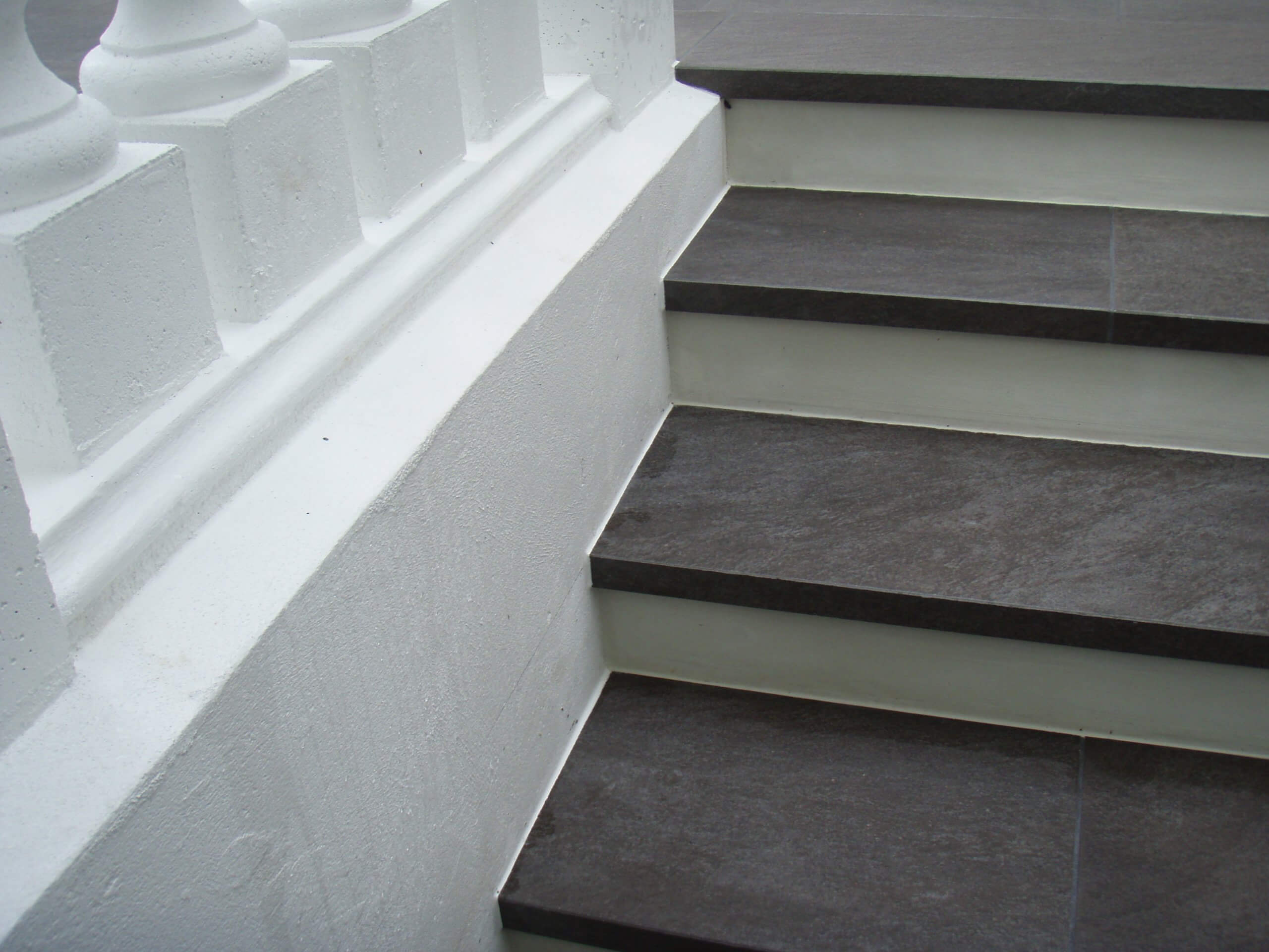 Vores trappefliser passer i størrelsen til de fleste danske trapper og er lette at integrere i eksisterende designs. En standard flise dækker en trædeflade på omkring 30-33 cm, og vi anbefaler at "pakke trappen helt ind i fliser" for at sikre en lang levetid og et ensartet udseende.