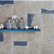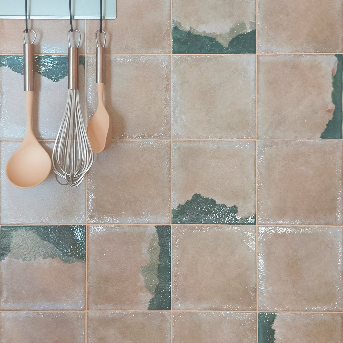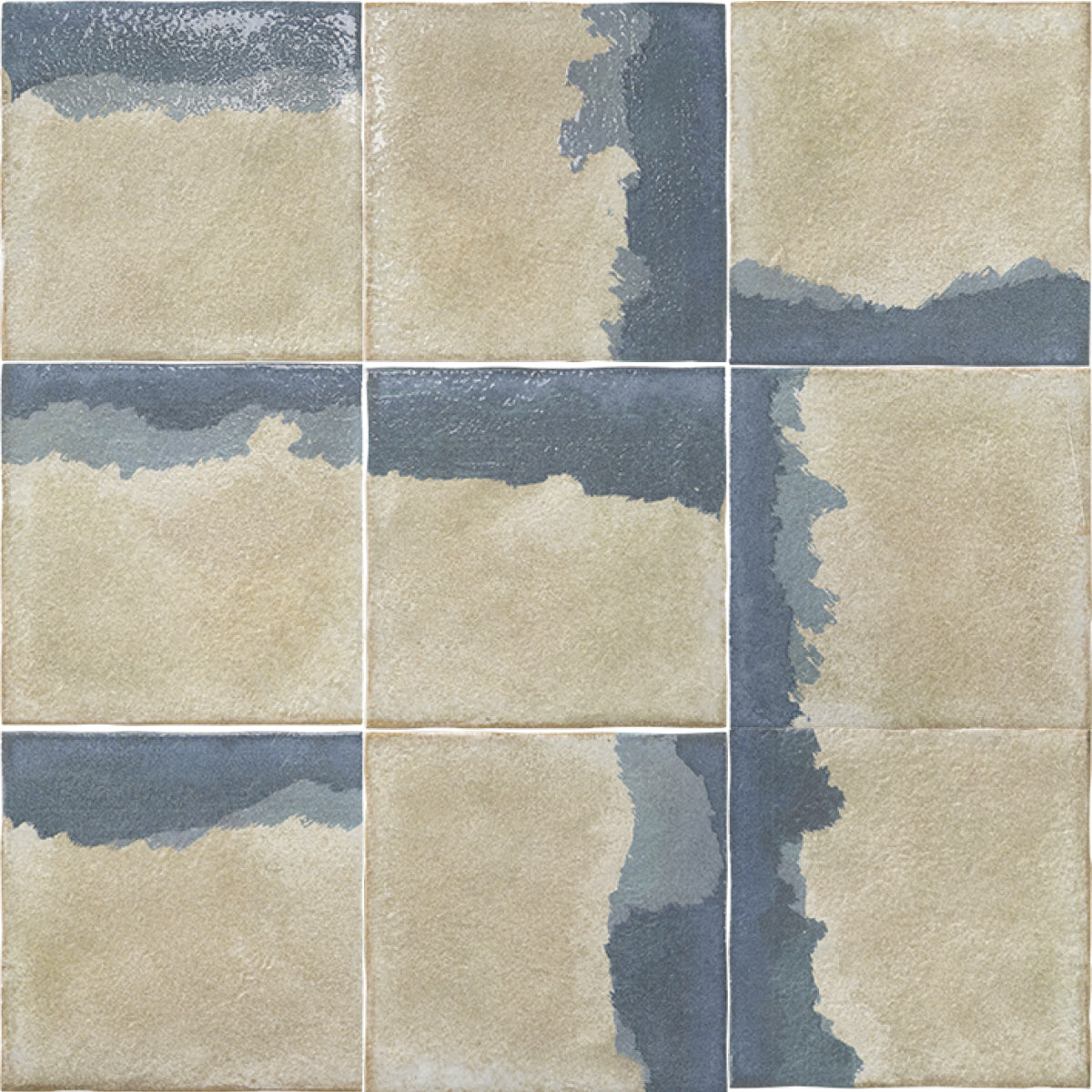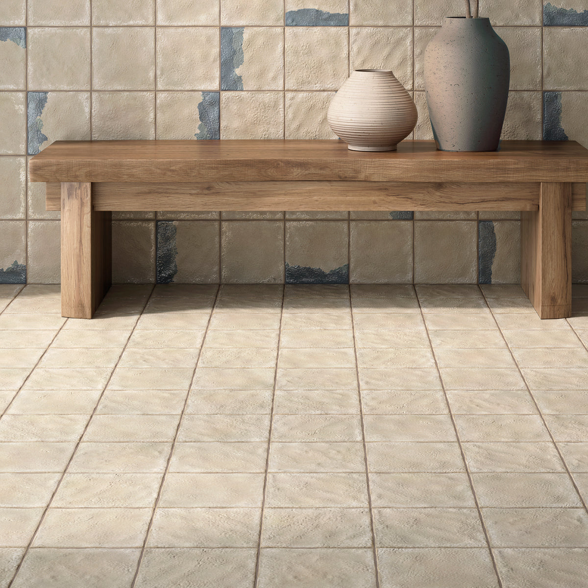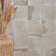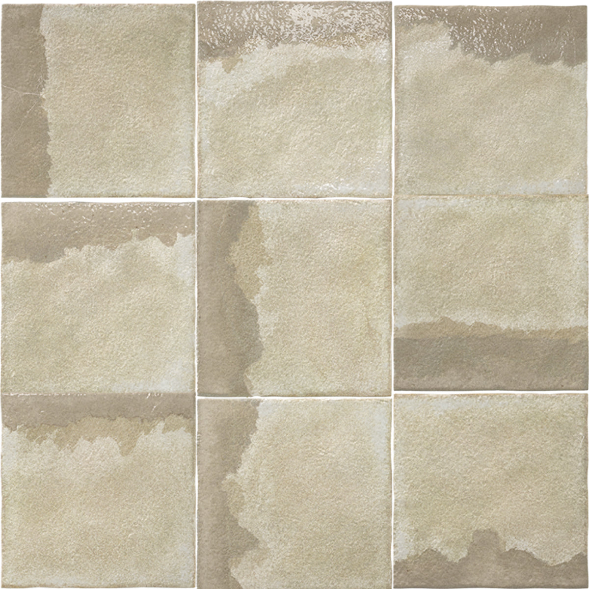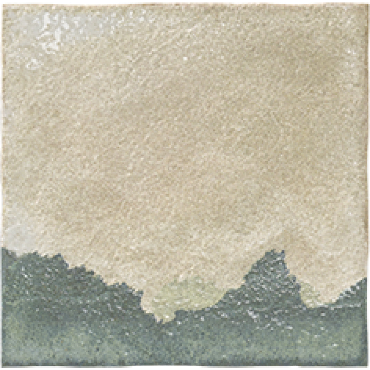 Flisen har en naturlig, stenlignende overflade, hvor den matte base skaber dybde og et autentisk look. Den blanke glasur tilfører et diskret spil, som reflekterer lyset og giver flisen liv uden at virke dominerende. Resultatet er en harmonisk balance mellem det rustikke og det raffinerede, hvor kvalitet og finish tydeligt fremhæves.