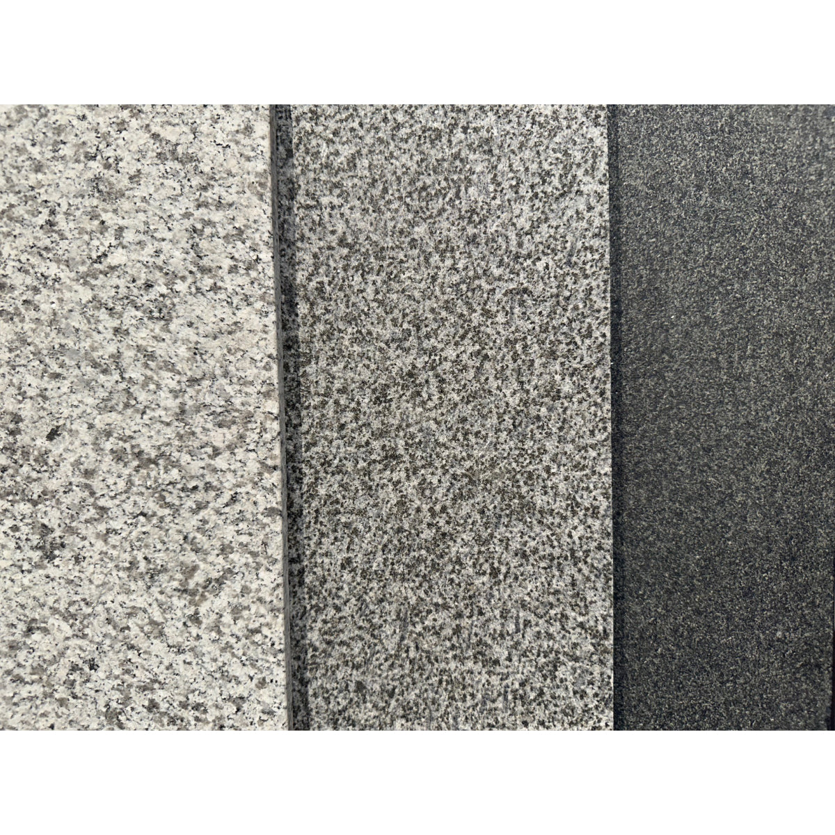 Robust granit flise med ru/jetbrændt overfalde - perfekt til trapper/trin og repos.