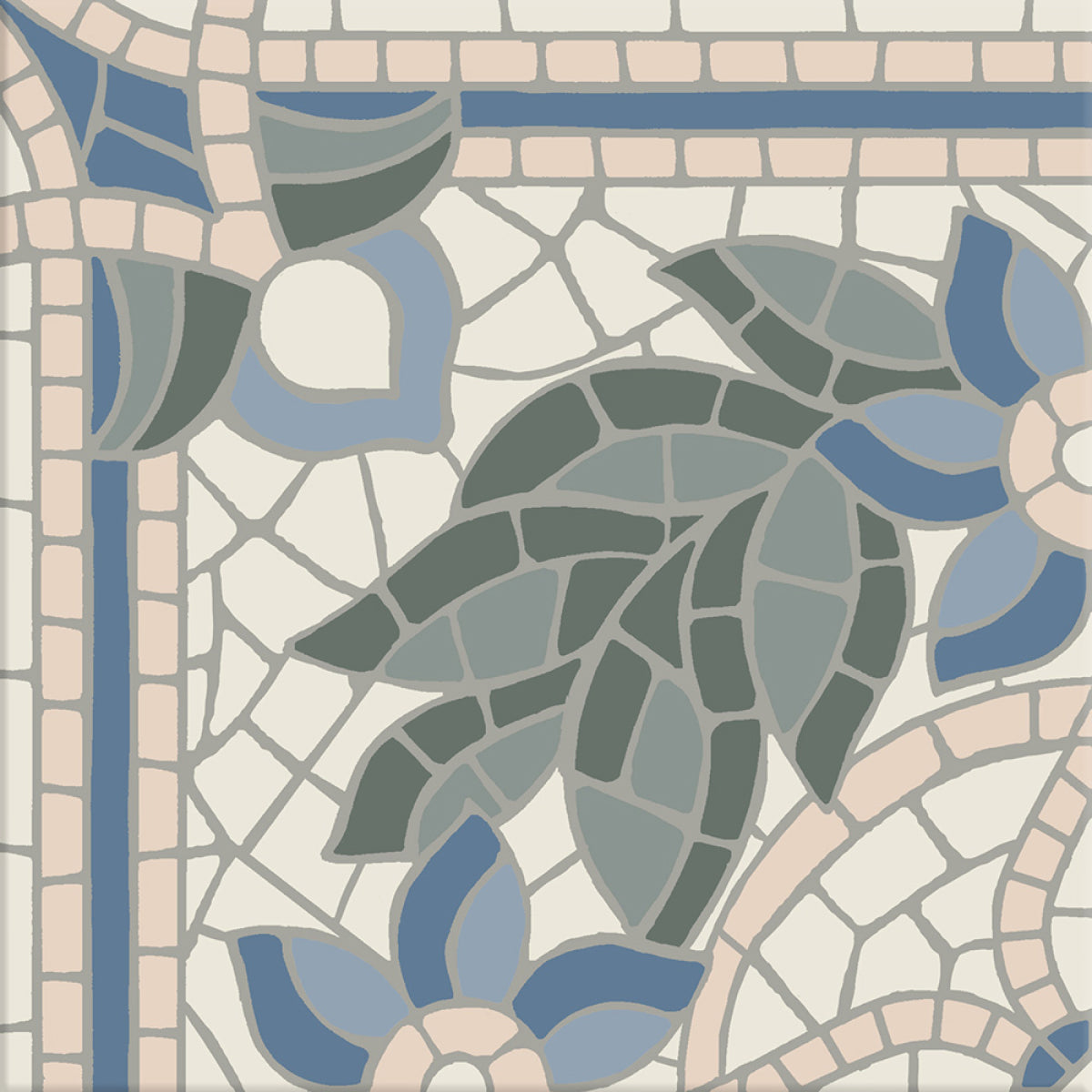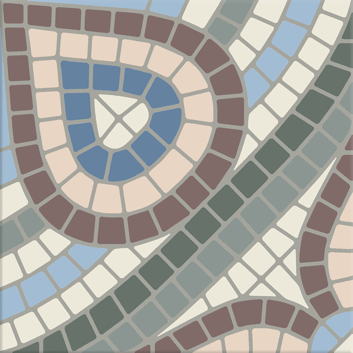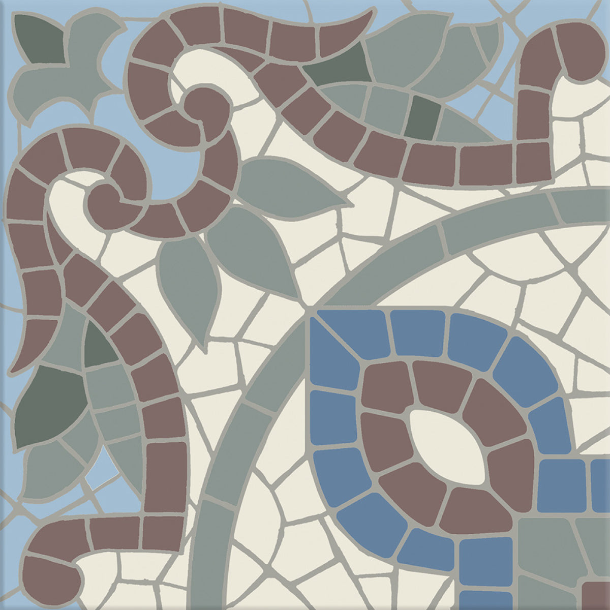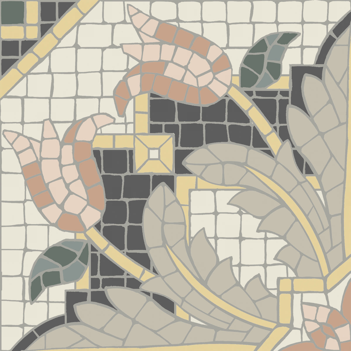 Den består af 4 dekorationer inspireret af antikke græsk-romerske mosaikker og yderligere 4, der minder om ikoniske hydrauliske fliser, ledsaget af 4 glaserede baser i omhyggeligt udvalgte toner: Lys elfenben, Grøn, Blå og Bourgogne.